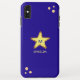 Elegante hermosa y brillante estrella dorada sobre fondo azul iPhone XS Max Funda. El texto se puede personalizar.
