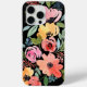 Elegante diseño de acuarela floral en una caja de teléfono de fondo negro, un accesorio de moda para tu equipo.