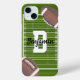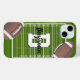 Este estuche de teléfono personalizado tiene un diseño de aficionados al fútbol con un campo de fútbol y dos bolas de fútbol ilustradas. Personalizó este estuche de teléfono con un nombre o apellido y una inicial. Un gran regalo deportivo personalizado para regalar a los aficionados al fútbol en su vida que juegan cartas.