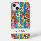 Make a retro statement with this groovy 70s inspired hippie flower power iphone 15 plus phone case! It's modern and trendy with bright multi-colored watercolor flowers. Make it uniquely yours with your name in a mod CAP font in black. It will look fabulous on your phone!