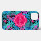 Patrón hawaiano tropical elegante, giratorio, moderno, con colores de neón, hojas de palmera verde azuladas, turquesa, verde, azul claro y rosa caliente sobre fondo negro. diseño botánico bonito con una plantilla para añadir su nombre o monograma. Los colores del tipo de letra se pueden personalizar pulsando sobre el botón "Personalizar" de las herramientas de edición. Este vibrante, jungla, selva tropical de moda colores de verano diseño un gran regalo para los chicas. #3327a tropical+palmas+hojas, hawaiano, palmera+hojas, verde azulado+turquesa+verde, caliente+rosa, nombre+monogramado, girly+moderno, verano+tropical+patrón, selva+selva, neón+colores, exótico, claro+azul, elegante