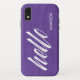 Funda De Case-Mate Para iPhone Hola White Script Name Purple Linen Textura Foto