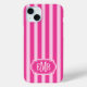 Funda De Case-Mate Para iPhone Hot Pink and Pink Monogrammed Stripes