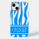 Funda De Case-Mate Para iPhone Impresión de cebra azul claro con monograma