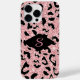 Estuche de teléfono impreso en color rosa y negro purpurina. Este divertido diseño de huellas de animales es perfecto para cualquiera que le guste mostrar su lado femenino salvaje.