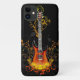El funda del iPhone 11 se muestra en una ilustración de la guitarra en un fondo negro. Personalizar o compra como está.
