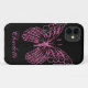 Una mariposa rosa caliente en filigree elegante acentúa tu nombre en este estuche para iPhone.
