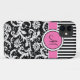 Rayas rosadas, negras, y blancas modernas cones monograma con del damasco de la casamata el caso del iPhone 5 de There™ apenas.