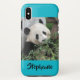 Este duro funda para el iPhone X es parte de nuestra colección "Pandas Gigantes", que incluye artículos de cocina a juego, otros regalos, tarjetas de felicitación y papel de envoltura. Qué maravilloso complemento para tu nuevo iPhone. Un regalo maravilloso para los amantes del panda. Este estilo tiene un fondo azul. Tipografía divertida. Foto original de Marcia Socolik, tomada en Chengdu, China. Todos los derechos reservados © 2017 Alan & Marcia Socolik.