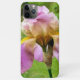 Cierre de un iris rosa y morado barbudo que muestra la barba amarilla