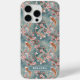 Customize this gorgeous teal, cream, gold and pink Japanese Sakura koi fish and cherry blossoms on soft teal design iPhone 15 pro max case with your your name in a trendy modern CAP font in cream on light teal. It's so delicate and beautiful!