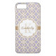 Funda De Case-Mate Para iPhone Lavanda monogramo y hoja de quatremia dorada