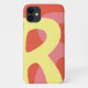 colores retro, amarillo, coral, rosa con la letra R