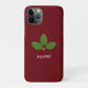 Hojas modernas de laurel verde en el estuche para iPhone crimson. El texto se puede personalizar.