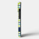 Esta manta de corte de estilo contrapeso tiene un aire de adormidera con rayas de intersección dibujadas a mano de color verde limón, azul turquesa y azul marino, colocadas sobre un fondo blanco. Este estuche para iPhone tiene una banda azul marino lista para ser personalizada con un nombre.