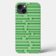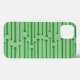 Este estuche de teléfono tiene un diseño de inspiración moderna de mediados de siglo de líneas con círculos en los extremos en tonos verdes para el Día de San Patricio.
