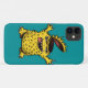 Estuche para iPhone monstruo de pollo loco con un ilustracion de personaje dibujado con tinta digital en colores verde amarillo y azul.