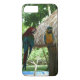Este iPhone 6 funda loro tropical en percha con dos loro uno es amarillo y azul macaw el otro es rojo y azul macao sentado frente a una choza de paja y agua debajo de ellos
