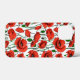Estuche de teléfono en un delicado patrón de espías rojas vibrantes con tallos y hojas verdes profundas, en un tiempo de fondo, con, cada amapola florece de manera única curvada y retorcida, como si se balanceara suavemente en la brisa.