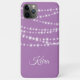 Luces de cuerda brillantes ilustradas y tu nombre en tipo elegante, acentúa este estuche para iPhone lila, lo que lo hace un accesorio o regalo perfecto. Este funda se puede personalizar fácilmente sin un monograma o un nombre si se prefiere.