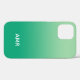 El gradiente mínimo verde claro a verde oscuro presenta su monograma en un elegante tipo de letra sans serif blanco cerca de la parte inferior. Agregue sus iniciales, nombre u otro texto en la barra lateral. También hay otros estilos y modelos fundas disponibles en la barra lateral. Para ver el diseño de moda en color ombré en otros objetos, haz clic en el enlace "Artes Rocklawn". © Claire E. Skinner, todos los derechos reservados.
