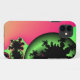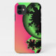 estuche de iphone de arte fractal rosa y verde y negro abstracto