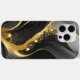 Elegante estuche para iPhone con tonos negros y grises con un patrón de flujo de mármol resaltado en oro