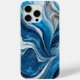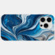 Elegante estuche para iPhone con tonos azules con resaltado plateado patrón de flujo de mármol