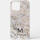 Proteja tu iphone con este mármol blanco con estuche de teléfono negro y crema. Es un moderno tipo de letra gris profundo con tu primera inicial y el nombre añade el toque final.