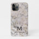 Proteja tu iphone con este mármol blanco con estuche de teléfono negro y crema. Es un moderno tipo de letra gris profundo con tu primera inicial y el nombre añade el toque final.