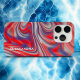Funda De Case-Mate Para iPhone Mármol monograma giratorio abstracto gris azul roj