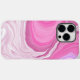 Rosa y blanco con un toque de maletín de teléfono con fluido de mármol morado.