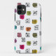 Este estuche de teléfono tiene un diseño moderno de mediados de siglo de laberintos dispersos, algunos con manchas de colores debajo de ellos.