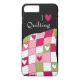 funda Quilter para iPhone 7 Plus hecho en negro con gráficos rosas, blancas y verdes de un tejido cardíaco. I (corazón rosado) El tejido decora la parte superior del funda. Personalizar para agregar texto adicional o personalizar el texto existente para adaptarlo a sus necesidades.