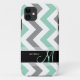 Funda De Case-Mate Para iPhone Menta fresca personalizada y Chevron gris