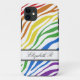 Elegante funda personalizado para iPhone 5 personalizado con su nombre, y diseñado con un patrón de impresión de cebra con rayas de cebra blancas y arcoiris.