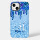 Funda De Case-Mate Para iPhone Moda azul oscuro purpurina goteo monogramo