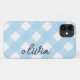Personalice este clásico estuche para iPhone de chapa de gingham en cualquier nombre que desee. El monograma está en un tipo de letra de guión moderno en negro. Fundas disponibles en todos los modelos de iPhone actuales y en una gama de estilos como apenas allí y fundas duros para una protección extra.