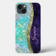 Funda De Case-Mate Para iPhone Moda monograma purpurina iridiscente azul morado