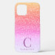 Funda De Case-Mate Para iPhone Moda Purpurina Arcoiris rosado Ombre Monograma