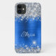 Clásico purpurina de plata brillante purpurina fino en el borde superior, sobre un falso Relieve metalizado negro metalizado o de acero inoxidable estilo azul. Personalizar el guión de estilo manuscrito moderno para crear tu propio funda. Puede agregar una inicial de monograma para crear una combinación inicial de primer nombre. Esta purpurina de platería faux glam y Relieve metalizado azul real metalizado cepillado será perfecto como regalo personalizado para ella.