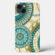 © Verónica Charron/Apple salvaje. Esta imagen de modelos circulares ofrece el azul y colores oro. La imagen tiene un moreno coloreada, fondo modelado floral.