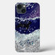 Moderno y elegante Agate de piedra Purpurina de moda Nombre personalizado Script azul iPhone 13 Funda