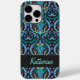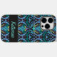 Funda De Case-Mate Para iPhone Moderno Damask Art Deco Black Turquoise Blue Name