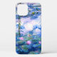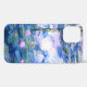 Un funda Monet de nenúfares rosados con nenúfares iPhone 12 con hermosos nenúfares rosados flotando en un tranquilo estanque azul con colchonetas de lirios. Un gran regalo de Monet para los amantes del impresionismo y el arte francés. Impresionismo natural sereno con flores encantadoras y paisaje de estanques pintorescos funda iPhone 12.