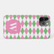Whether you’re on the course, at the clubhouse, or on the go, this pink and green argyle monogram iPhone case blends fashion and function—giving your phone a standout look with a timeless, coordinated feel.