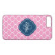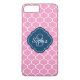 Funda De Case-Mate Para iPhone Monograma azul del patrón de Entramado rosa único