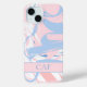 Monograma con sus iniciales o texto en este estuche para iPhone de mármol azul blanco y rosa. Disponible en todos los tamaños de estuches para iPhone.