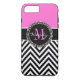 Funda De Case-Mate Para iPhone Monograma Chevron negro y rosa elegante
