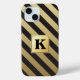Funda De Case-Mate Para iPhone Monograma de Elegantes Rayas Negras y Doradas